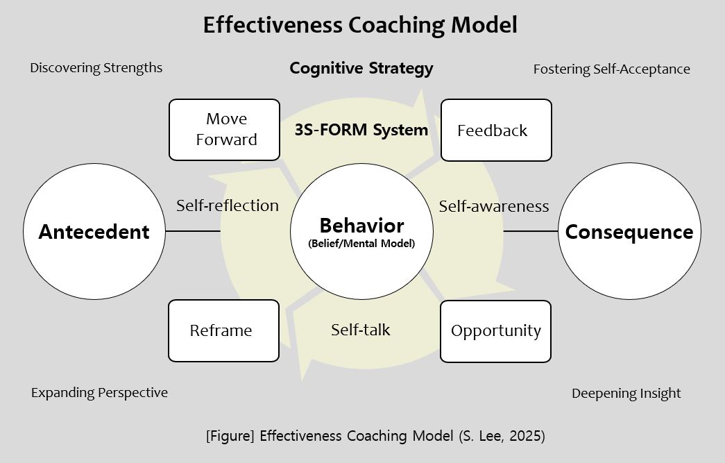 Today, coaching businesses that address effectiveness at the individual, team, and organizational levels are rapidly expanding. In 2014, advocating that “integrated coaching of individuals, teams, and organizations is the new path,” I published Effectiveness Coaching by a Management Psychologist (Lee, 2014), which compiled my coaching research and cases up to that point. In 2026, I completed an integrated coaching system that connects a framework linking brain – mental models – perspective shifting – desired results with the existing Effectiveness Coaching Methodology (ECM). I am now preparing to publish a book that presents a comprehensive coaching system integrating neuroscience, cognitive science, and ECM.